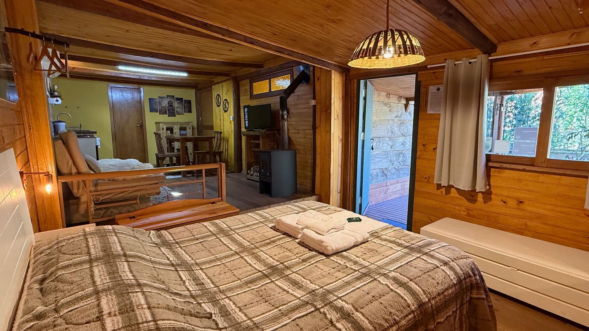 O Chalé do Buda é nossa acomodação mais ampla, com vistas para o lago de carpas ornamentais. Tem varanda privativa, lareira, cozinha equipada, ducha a gás, torneiras aquecidas, ar-condicionado, cama queen e um mezanino para duas pessoas. Roupas de cama e banho fornecidas. Café da manhã opcional servido no chalé. Acomoda confortavelmente 4 pessoas (em casos excepcionais, o chalé tem um puff solteiro adicional que permite acomodar mais um hóspede, opção somente a pedido).